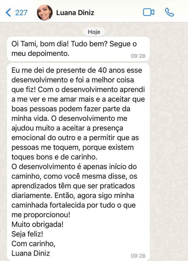 Na minha trajetória como terapeuta, tive o privilégio de ajudar inúmeras pessoas com minha metodologia única, que continuo aprimorando ao longo do tempo.